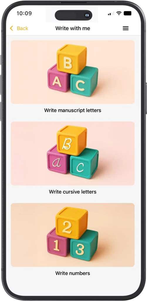 Learn to write letters and numbers in a fun and interactive way! The child will practice numbers and letters by tracing the outlines directly on the screen. Perfect for developing fine motor skills and taking the first steps in writing!